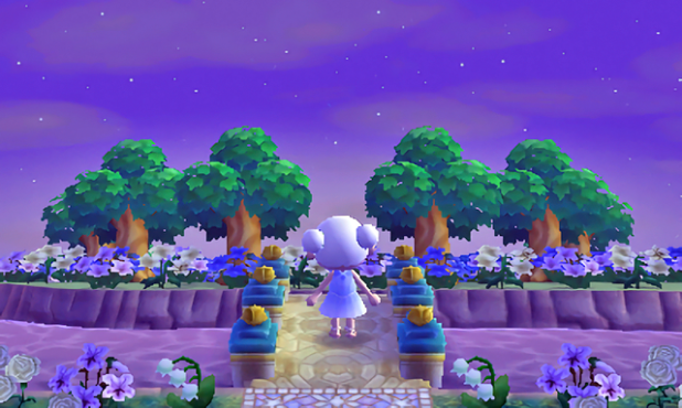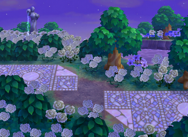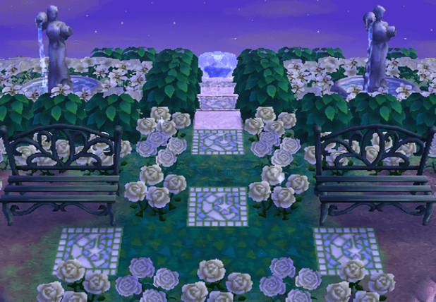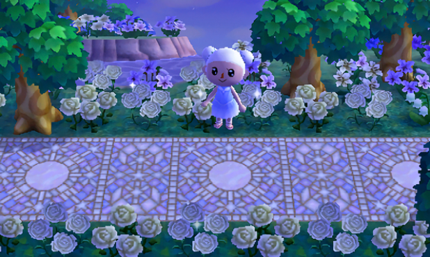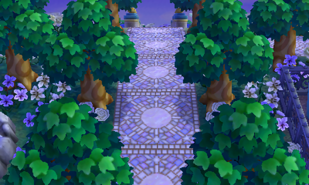 This is the main path for the moon side of town, new to this DA update! I liked the dirt paths I had before, but feel like the new path patterns add so much more to the white glowy look I wanted this side of town to have. Plus, the way they kind of mirror the sun mosaic paths on the other side make my heart happy 🙂
