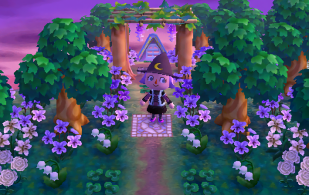 Here is Violet on the trail to her home, where the air is hung with the sweet aroma of wisteria and violets. The lonely witch has made her mark on the gardens in her nook of the forest, but also lets things grow wild.