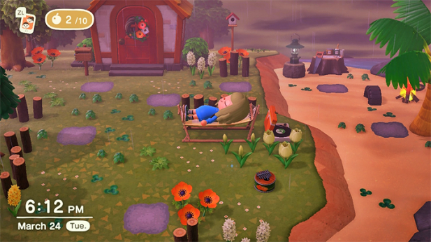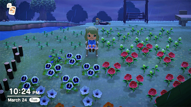 My very first visit to another island took place late at night (or rather, the wee hours of the morning on March 23), after my first day of playing on my own island! It was the most magical rainy night in mine, and still so wild and weed-filled (but in the best way); I was just really enjoying the vibes and couldn’t stop playing. Cody here saw me online and invited me to visit his island for the first time, which to my day-1 eyes, blew me away at seeing hybrids and fences and elegant outdoor furniture arrangements! 😍