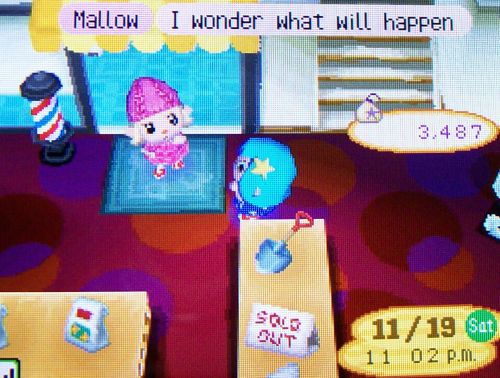 This is her new haircut, she looks like the old Kammile. ^_^ We were curious about what would happen since Nook usually kicks his customers out after 11 PM, but I guess he’s more polite when there are guests in town.