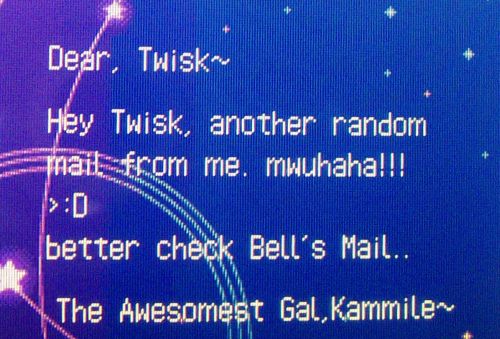 Later on I noticed this letter and immediately checked Bell’s mailbox, but it was full of old letters. >_> Hopefully new mail will arrive now that I’ve cleaned it out, thanks Kammile! It was a huge surprise, I don’t remember you sending any letters. 😛