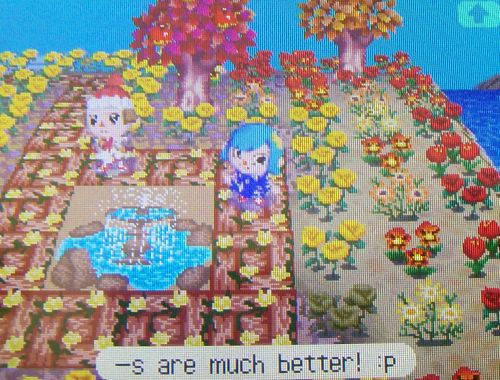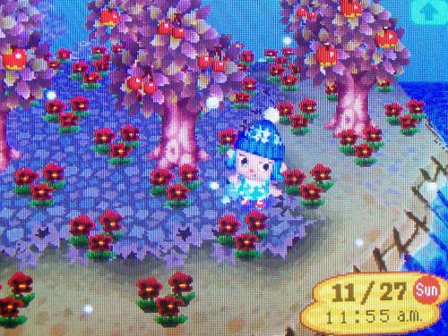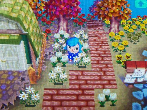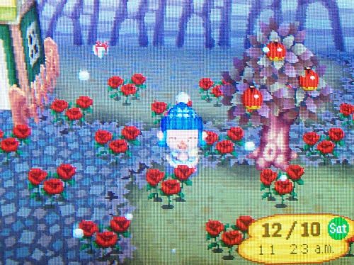 Most of my yellow and orange flowers are being stored in my dad’s town now, I don’t know what to do with them. 😛 Once that was done, it was finally time to start catching up: watering flowers, checking neighbors and the shops, saving and setting the DS clock one day forward, repeat. Not a fun process, but I took my time and it wasn’t too bad.