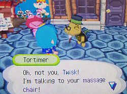 During the Fishing Tourney (which I didn’t participate in) I finally gave Tortimer the massage chair I got from Saharah ages ago and kept forgetting to give him during events. 😛 I know I have tons of scallops on my beach, but I promised myself I would go through the turnip trade the long way to get the golden axe.